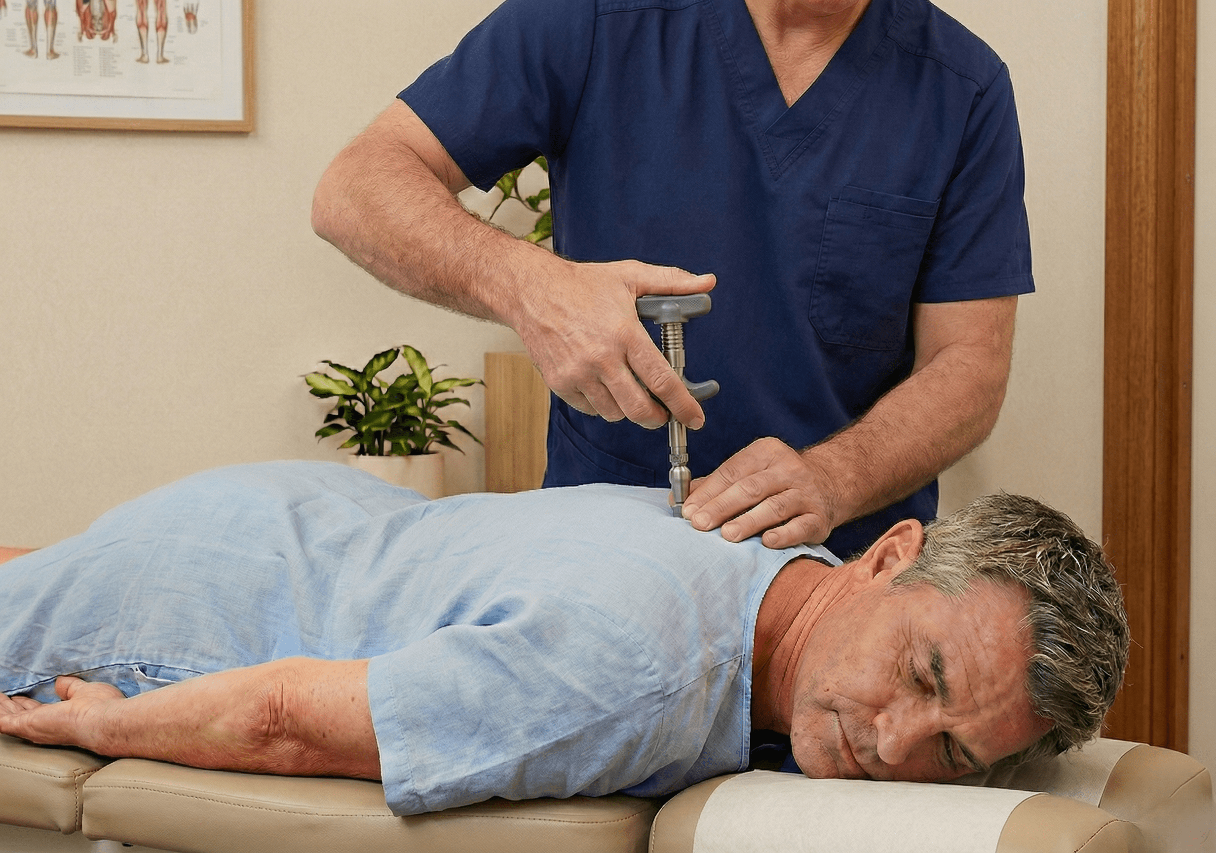 The Activator Instruments uses a spring loaded, handheld mechanical adjusting tool. This innovative tool delivers quick, low-force impulses to specific points, improving joint mobility.